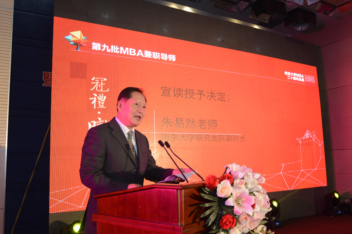 菲尼克斯电气中国公司总裁顾建党先生代表获奖兼职导师致辞。他说到,南大MBA连接了过去、今天和未来,认识了南大的优秀老师,帮助企业更高更快地发展,自己充满了对于未来MBA的希望,MBA教育一定也能越办越好。