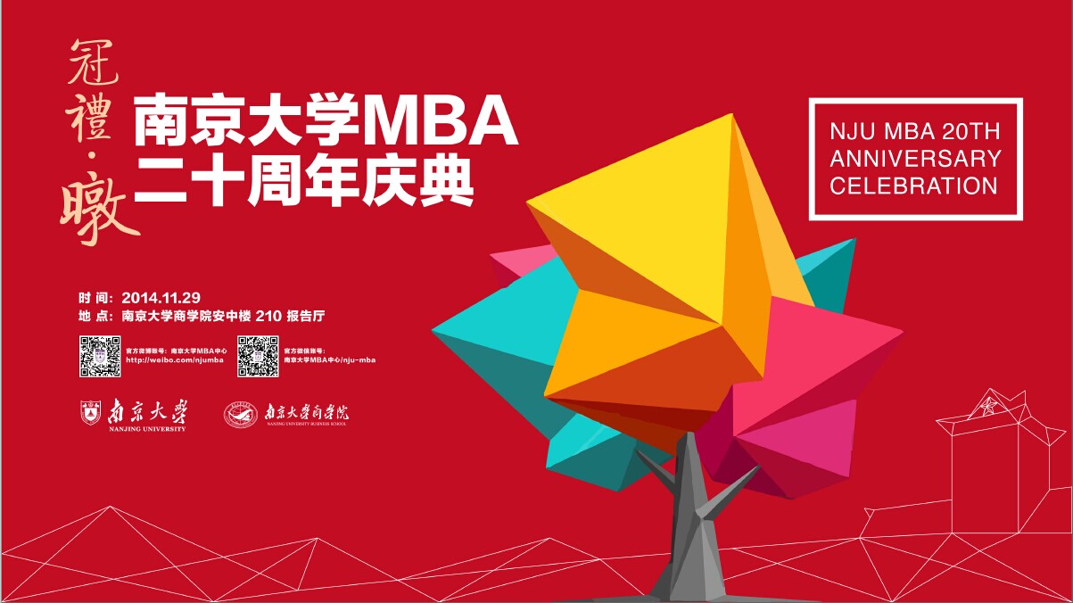 2014年11月29日,“冠礼·暾”永利集团88304官网MBA二十周年庆典在安中楼210报告厅如期举行。此次活动由永利集团88304官网主办、永利集团88304官网MBA教育中心承办、永利集团88304官网MBA联合会协办。此次周年庆典吸引了从94级至14级的各届校友、在校同学总计200多人参与,集体参加了开幕式、世界咖啡、庆典仪式、圆桌论坛等活动。重温了二十年来的校友情、师生情、南大情。