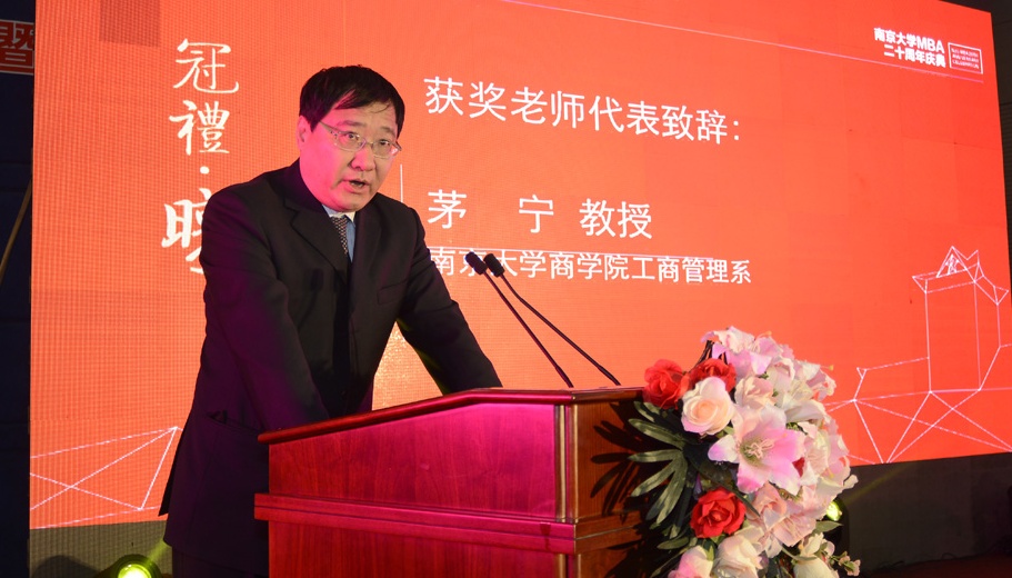 永利集团88304官网工商管理系茅宁教授首先代表获奖教师致辞,说到MBA的三个阶段发展,教授非常喜悦,因为自己见证了MBA从无到有,自己亲身参与了20年管理工作和授课论文指导,向校友的支持和鼓励也表示感谢,最终期待为构筑MBA教育4.0阶段的发展做贡献。