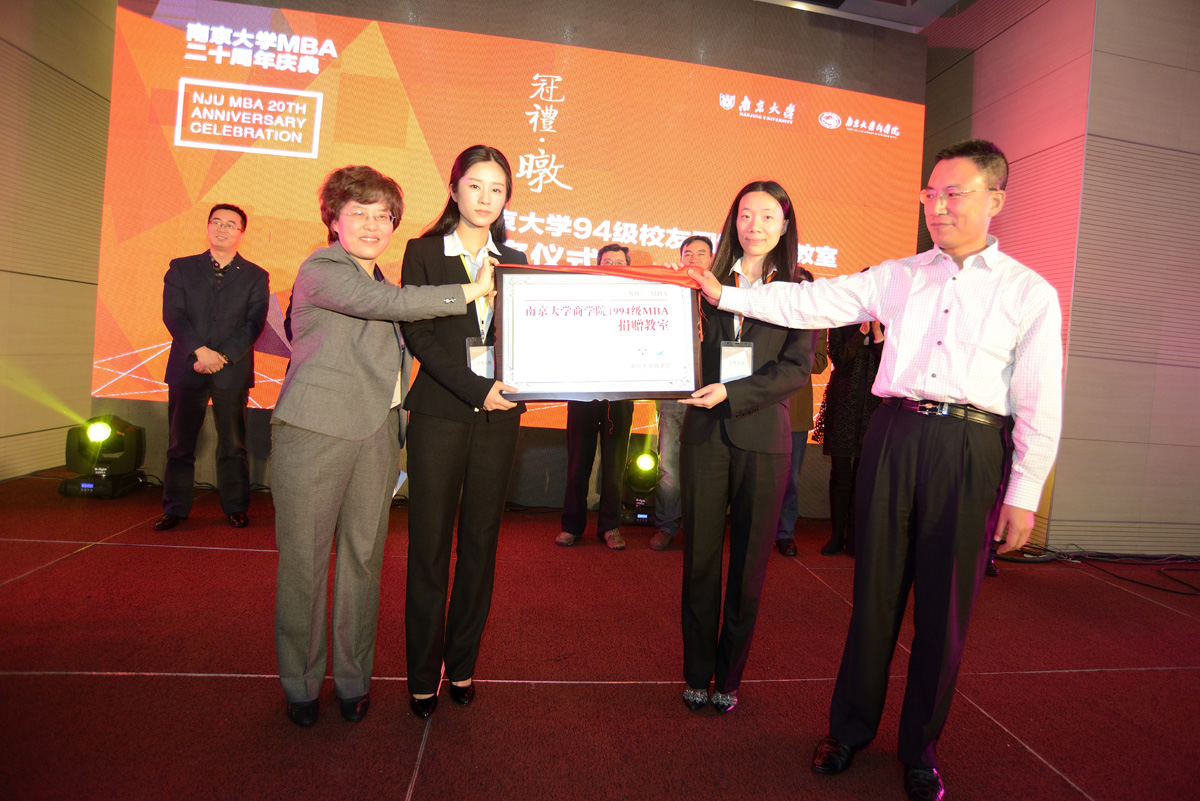第四项议程是永利集团88304官网94级校友回馈母校教室冠名仪式。94级校友们与MBA教育中心李晶主任一起为教室揭牌,94级张世强校友代表第一届MBA学员发言,提出了以他们为基石,望南大MBA越来越好的祝愿。