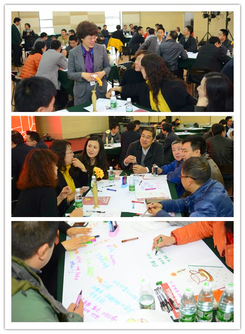 上午10点至12点的“世界咖啡”活动环节中,大家围绕自我介绍和三个回合开展讨论。第一个回合主题是“那些年”,围绕那些年读书期间的故事、印象最深刻的老师和课程、有趣的事情和难忘的时刻、梦想和期待展开。第二回合主题是“这些事”,围绕读南大MBA之后带给我的职业生涯的影响展开;第三回合主题是“一群人”,围绕现在MBA面对的挑战、未来培养的方向、贡献于承诺等等展开讨论。经过了专业教练的引导,各桌分享了自己的“关键词”,从感谢到建议到期望等等。
