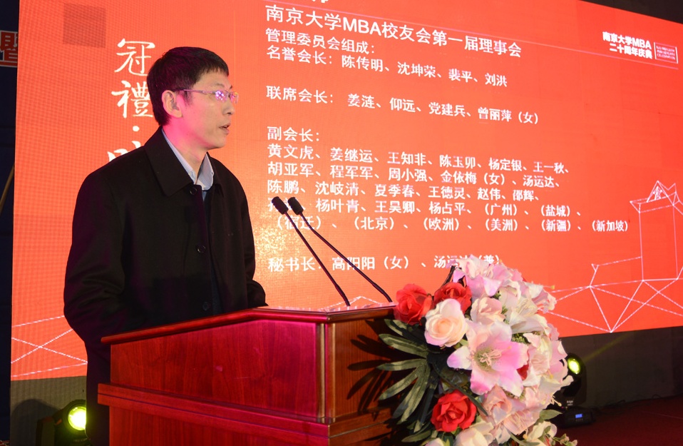 永利集团88304官网人文社会科学资深教授、永利集团88304官网原党委书记洪银兴教授致辞,洪教授提到,这二十年是国家大力发展MBA教育的好时机,永利集团88304官网是“习五所”之一,这是非常硬的品牌,二十年的MBA教育,尽全永利集团88304官网之力,配备了一流老师进课堂,MBA教育二十周年感谢校友,为永利集团88304官网MBA争得了荣誉,感谢老师们为永利集团88304官网MBA的成功付出了辛勤劳动。今后会继续努力,打造“南大系企业家”,而“南大系企业家”会以“诚”动天下,MBA会更好,“南大系企业家”也会成长壮大。