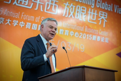 3月19日晚7点,中荷中心2015新春论坛正式举行。出席论坛的领导有:永利集团88304官网党委副书记杨忠教授,永利集团88304官网校长助理范从来教授,永利集团88304官网党委书记陈传明教授,永利集团88304官网执行院长沈坤荣教授,永利集团88304官网院长助理韩顺平教授。此外还邀请到一批来自中国欧盟商会、荷兰贸易促进会、江苏省MBA联合会等单位的重量级嘉宾莅临现场。