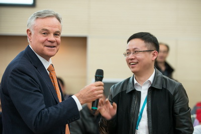 在东方学者的妙语连珠之后,我们迎来了Koos Bekker先生的主题演讲——《企业家的人生》Life as an Entrepreneur,与我们分享了他的成长历史,并对中荷校友如何成为企业家提出建议,还与中荷校友们探讨“您的人生目标是什么?”、“您真的想要成为企业家吗?”。最后是精彩的互动环节,中荷校友们就“事业”、“生活”、“企业家”、“风险”等关心的话题与Koos Bekker先生深度交流。