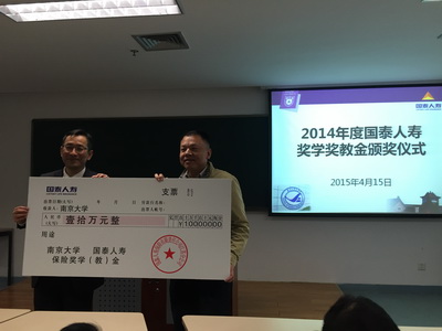 “国泰人寿奖学奖教金”由台湾国泰人寿保险股份有限公司于2006年5月在南大捐资设立,每年捐赠10万元奖助金融与保险学系的本科生、研究生和老师。时至今日,国泰人寿奖学金已经成功举办了9届,获奖师生人数已过500人。