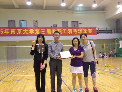 5月15日下午一点,永利集团88304官网第三届教职工羽毛球比赛在仙林校区体育馆拉开战幕,全校共23支男队、20支女队参加角逐。永利集团官网男队、女队不畏强手,团结拼搏,经9小时力战,取得女队第三名、男队第七名的理想成绩!