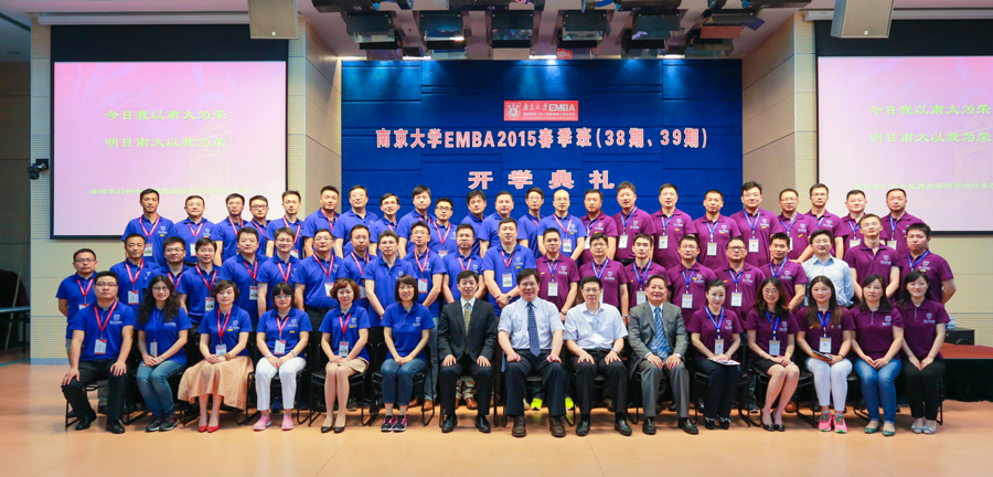 2015年5月29日上午永利集团88304官网EMBA2015春季班(38期、39期)开学典礼在安中大楼鸿意报告厅隆重举行。永利集团88304官网校长助理范从来教授、研究生院副院长朱易然教授、永利集团88304官网执行院长沈坤荣教授、永利集团88304官网院长助理韩顺平教授等领导出席典礼。