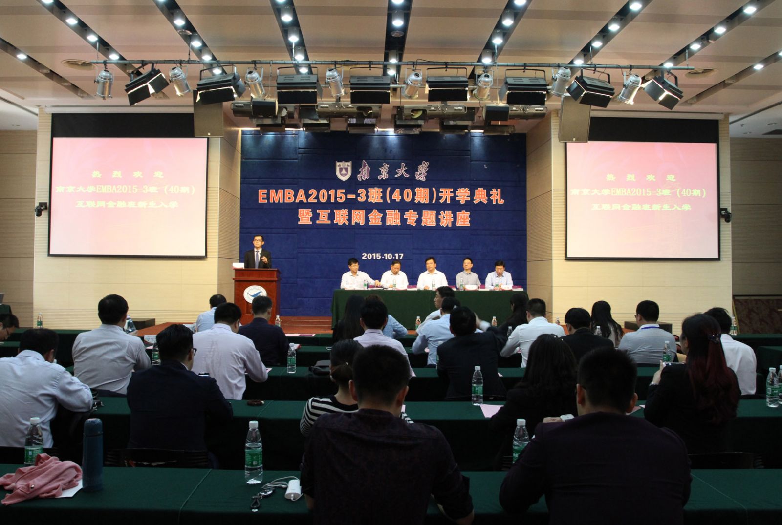 2015年10月17日下午,永利集团88304官网EMBA2015-3班(互联网金融)开学典礼在安中大楼鸿意报告厅隆重举行。永利集团88304官网执行院长沈坤荣教授、永利集团88304官网副院长裴平教授、研究生院副院长朱易然教授、江苏省金融办颜咏处长、江苏省互联网金融协会陆岷峰秘书长等领导和嘉宾出席典礼。