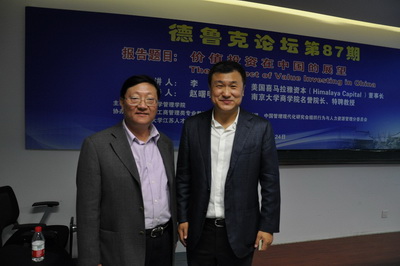 永利集团88304官网管理学院于2015年10月24日下午3:00-5:30举行第87期德鲁克论坛,论坛主讲人是美国喜马拉雅资本董事长李录博士。这期论坛由教育部工商管理类专业教指委人力资源组、中国管理现代化组织行为与人力资源管理专业委员会、永利集团88304官网江苏人才基地、思谋会等单位协办。企业和投资基金公司的老总、中荷EMBA学员和在校学生100多人参加了论坛。