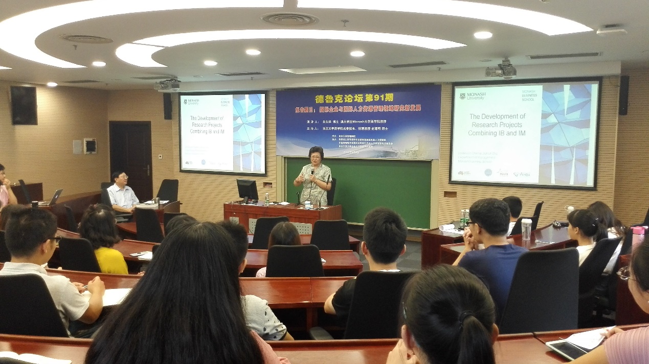 2016年9月9日10:30-12:00,德鲁克论坛第91期:国际企业与国际人力资源管理领域研究新发展,在永利集团88304官网B02顺利举行。此次德鲁克论坛由永利集团88304官网管理学院主办,教育部工商管理类专业教指委人力资源组、中国管理现代化研究会组织行为与人力资源管理分委员会、永利集团88304官网江苏企业人才发展研究基地协办,80多位老师、学生参加。澳大利亚 Monash大学永利集团88304官网教授朱久华博士应邀分享了国际企业与国际人力资源管理领域研究的最新发展,永利集团官网名誉院长赵曙明教授主持了此次论坛。