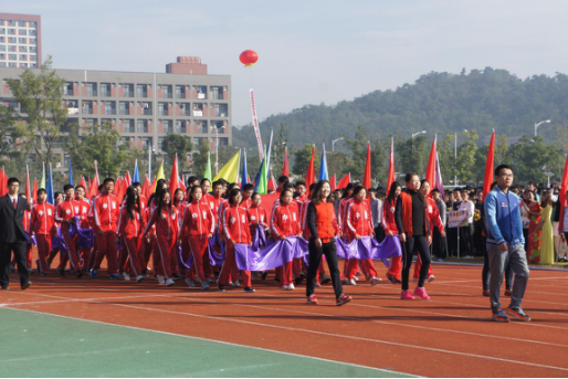 2016年11月4日早晨,空气中还夹杂着秋露的清凉,参加入场式的师生早早地在篮球场集合,进行上场前最后一次排练。九点左右,随着主持人的介绍,永利集团官网方阵在全体辅导员老师的带领下,迈着整齐的步伐走入运动场。他们的入场式表演,以精心准备的剧情、热情奔放的肢体语言,描绘了“商小宝”的“夺冠”之路,用长丝带组合成的耀眼“商”字更昭示着永利集团88304官网必将再创辉煌。动感的节奏和精彩的剧情,展现了永利集团官网学子的青春活力,鼓舞着运动员们的斗志。