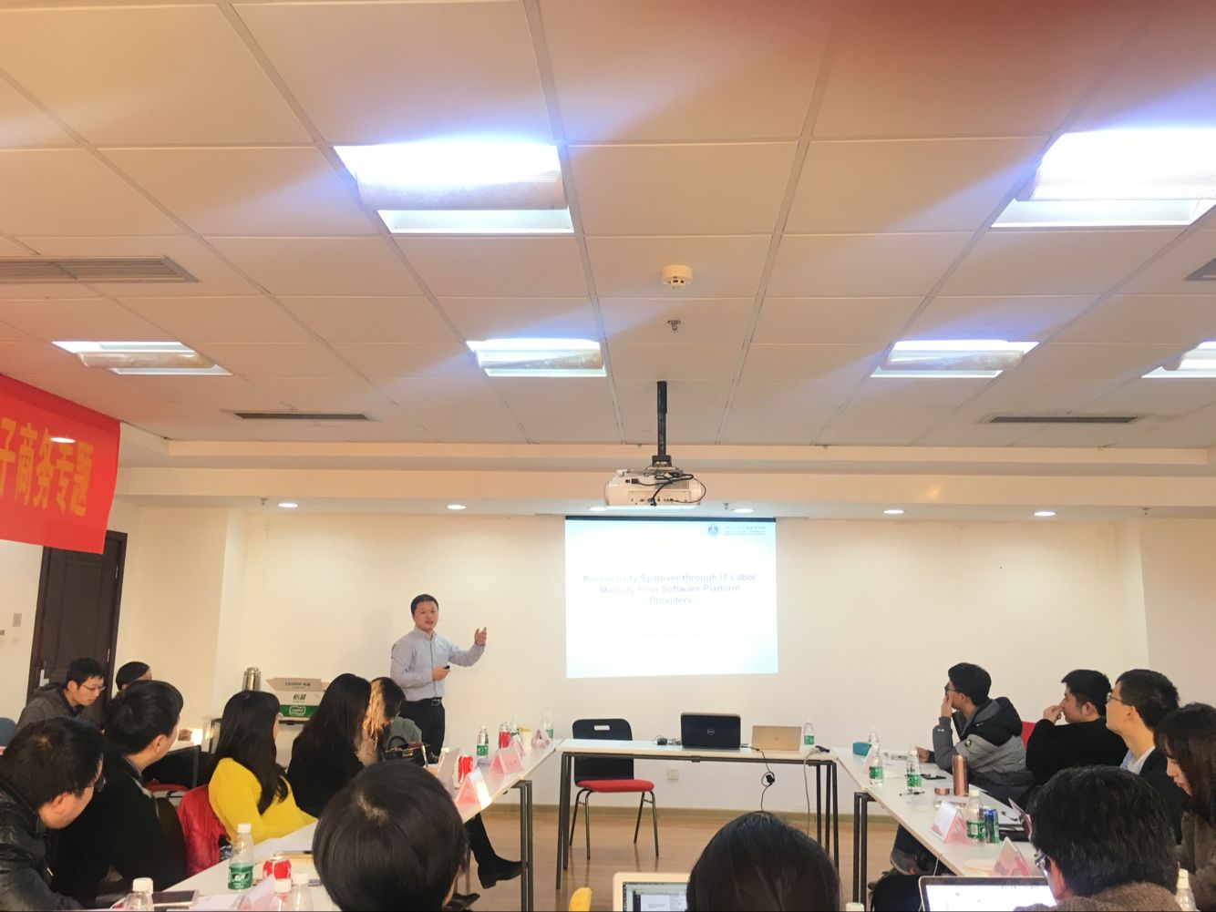 华南理工大学工商管理学院葛淳棉副教授分享了软件行业的IT劳动生产率的溢出效益,在平台经济效应下,少数软件巨头控制的关键技术平台(例如Microsoft Windows),其他软件公司在其上构建互补产品,因此,平台知识可能为从这些平台提供商招募IT专业人员的软件公司创造外部性。然而,虽然先前的研究表明生产率溢出是通过IT劳动力流动性发生的,但是这种溢出的来源尚未确定。葛老师提出,软件行业的IT劳动生产率溢出主要来自主要软件平台提供商,通过使用一个新的结构方程建模方法,和从在线专业网络得到的关于劳动力流动性的数据集,显示从四个主要软件平台提供商(谷歌、苹果、微软和甲骨文)雇用IT员工,会使接受企业的生产率得到显著提高,此外,溢出效应来自具有研究生学位或工作经验大于5年的IT员工。因此,葛老师解释了软件公司的IT劳动生产率溢出的来源,并分析了所得结果的意义和贡献。