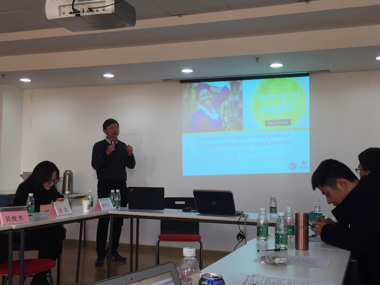 华东理工大学永利集团88304官网的陈晋副教授(由华东理工大学永利集团88304官网李嘉副教授代为发表演讲)研究在线众筹平台对发展中国家创业的影响。创业是解决发展中国家贫穷的一大法宝,以online crowdfunding为典型代表的小微融资(microfinance)可帮助这些国家的创业者融资,但是前人文献大多讨论众筹项目的关键成功因素(如如何成功融资、如何成功还款等),关于众筹的社会影响方面,多集中在创业企业的组织或个人层面,且结论效果不一,尤其是对宏观的国家层面研究不足。基于此,陈老师的研究基于创业文献与国家制度,通过自然实验,发现Kiva(全世界最大最早的众筹平台)的进入节奏显著影响发展中国家人们对创业机会的感知,一系列的稳健性检验均证实了这一效果。更进一步,该研究发现上述关系将被国家的政治、经济、社会制度所调节;具体而言,在经济较为发达、政治较为稳定、或者社会制度较为健全的发展中国家,Kiva对感知机会的影响强度就越大。该研究拟对在线众筹平台与创业的文献做出贡献。