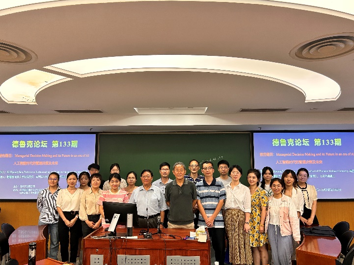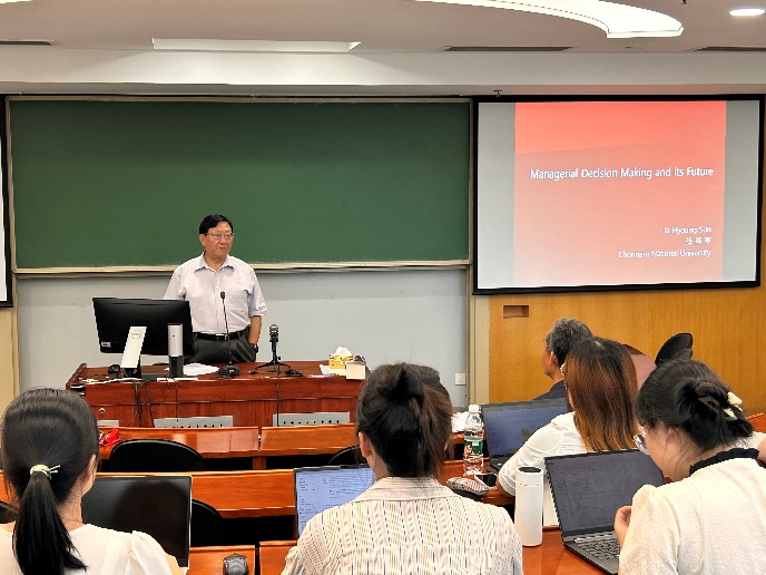 2023年9月4日下午,德鲁克论坛第133期在安中楼301教室顺利举行。韩国全南国立大学永利集团88304官网孙基亨教授受邀作了题为“人工智能时代的管理决策及未来”的主题报告。论坛由永利集团88304官网人文社科资深教授、永利集团88304官网名誉院长、知行书院院长赵曙明教授主持。20余名教师、博士后和博士生参加了本次论坛。