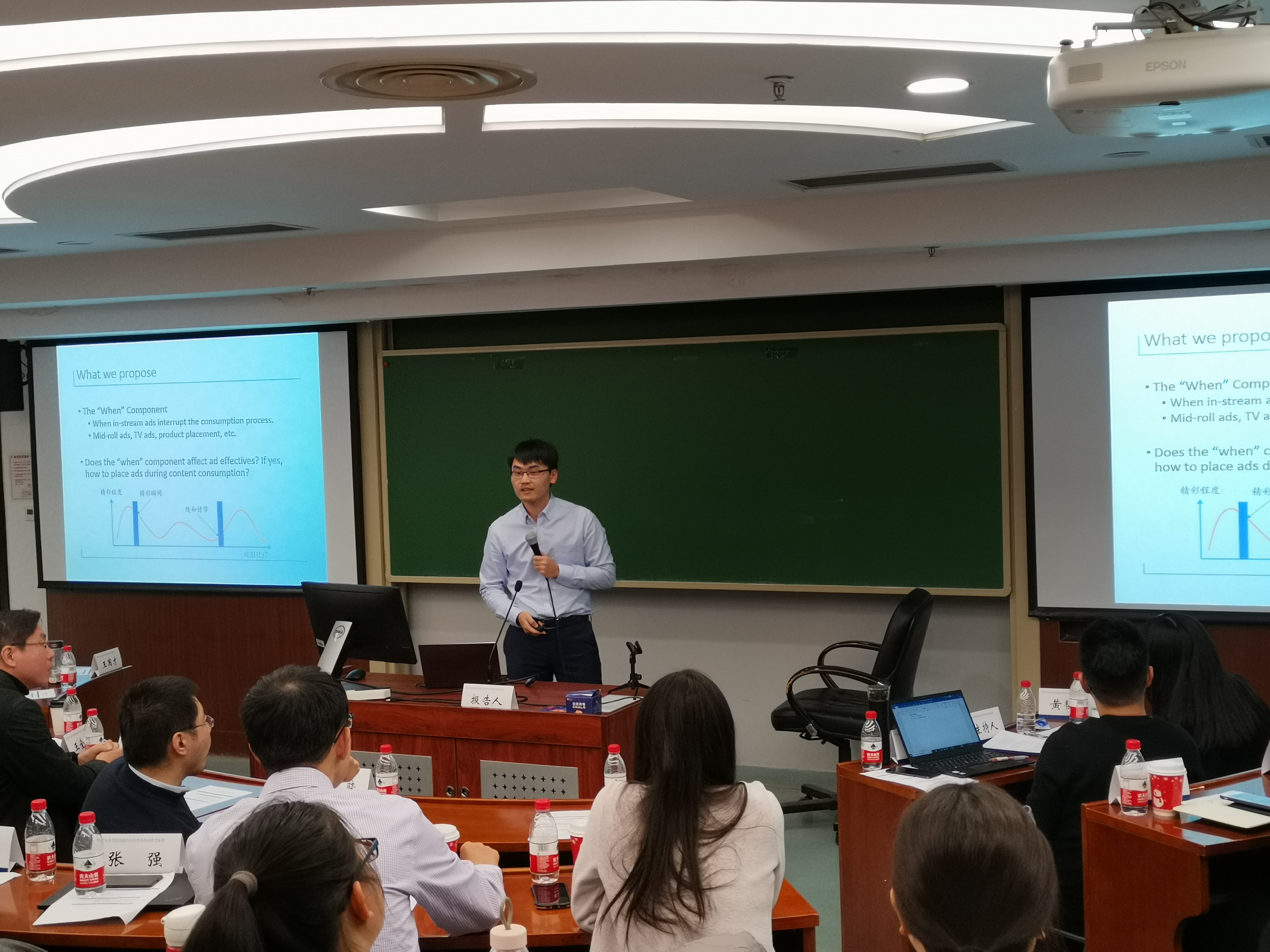 2019年12月7日至8日,由营销与电子商务系主办的永利集团88304官网管理学院海内外青年学者学术论坛(市场营销专题)在安中楼举行。本次论坛的主题是“市场营销研究趋势与前沿”,来自香港大学、香港科技大学、香港中文大学(深圳)、威斯康辛·麦迪逊大学、浙江大学、同济大学、厦门大学等13位青年学者分享了各自的最新研究成果,共同探讨消费者行为与营销模型研究领域的前沿,交流市场营销研究的心得与经验。永利集团88304官网管理学院副院长王全胜教授、营销与电子商务系主任陈曦教授致开幕辞,工商管理系副主任张骁教授、营销与电子商务系副主任王国才副教授出席了论坛开幕。本次论坛吸引了来自中国科学技术大学、东南大学、中山大学等高校和永利集团88304官网的70多位教师、博士生和硕士生参加。论坛共分为消费者行为与营销模型两个模块。