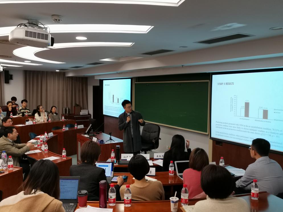 永利集团88304官网教授黄韫慧的研究分享聚焦大数据时代的隐私关注(Privacy concern),探讨了有关个人信息隐私关注的问题是否可以溢出到不相关的领域之中。通过二手数据和实验发现人们对隐私的关注将提高对道德产品的偏好,并就两种可能的解释机制与在场师生进行了深入的探讨。