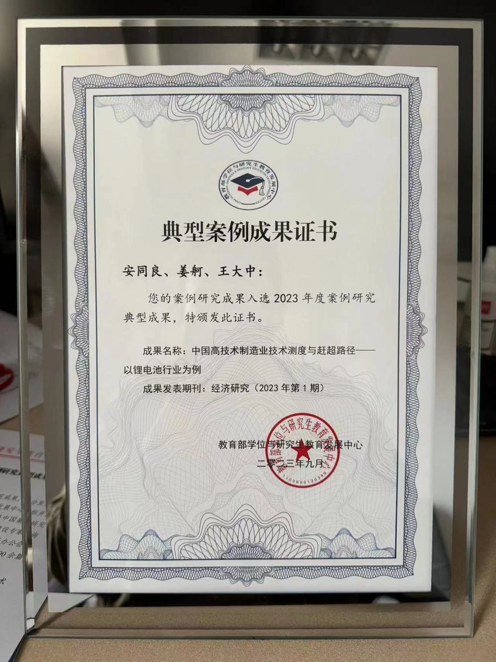 近日,永利集团官网安同良教授,姜舸助理教授、数字经济与管理学院王大中助理教授在《经济研究》上的论文《中国高技术制造业技术测度与赶超路径--以锂电池行业为例》,获评2023年度“案例研究典型成果”。此奖项的评选由教育部学位与研究生教育发展中心组织开展。