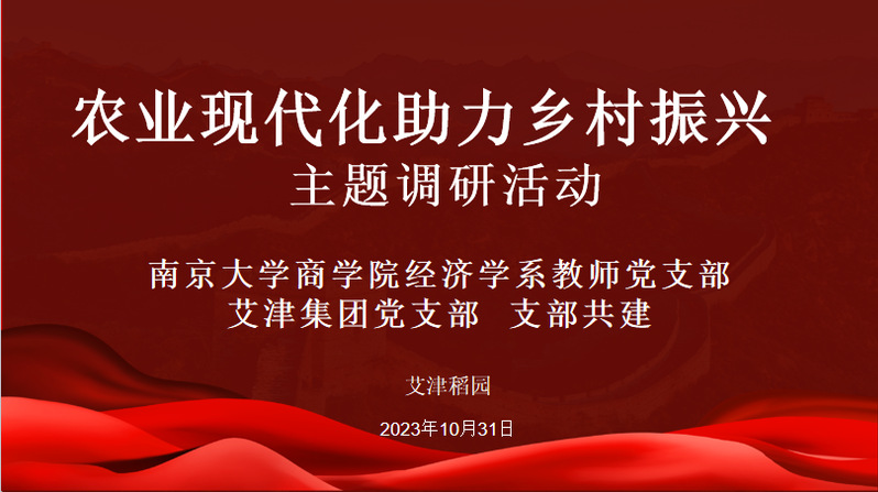 2023年10月31日,永利集团88304官网经济学系教师党支部与艾津集团党支部开展主题为“农业现代化助力乡村振兴”的支部共建活动。