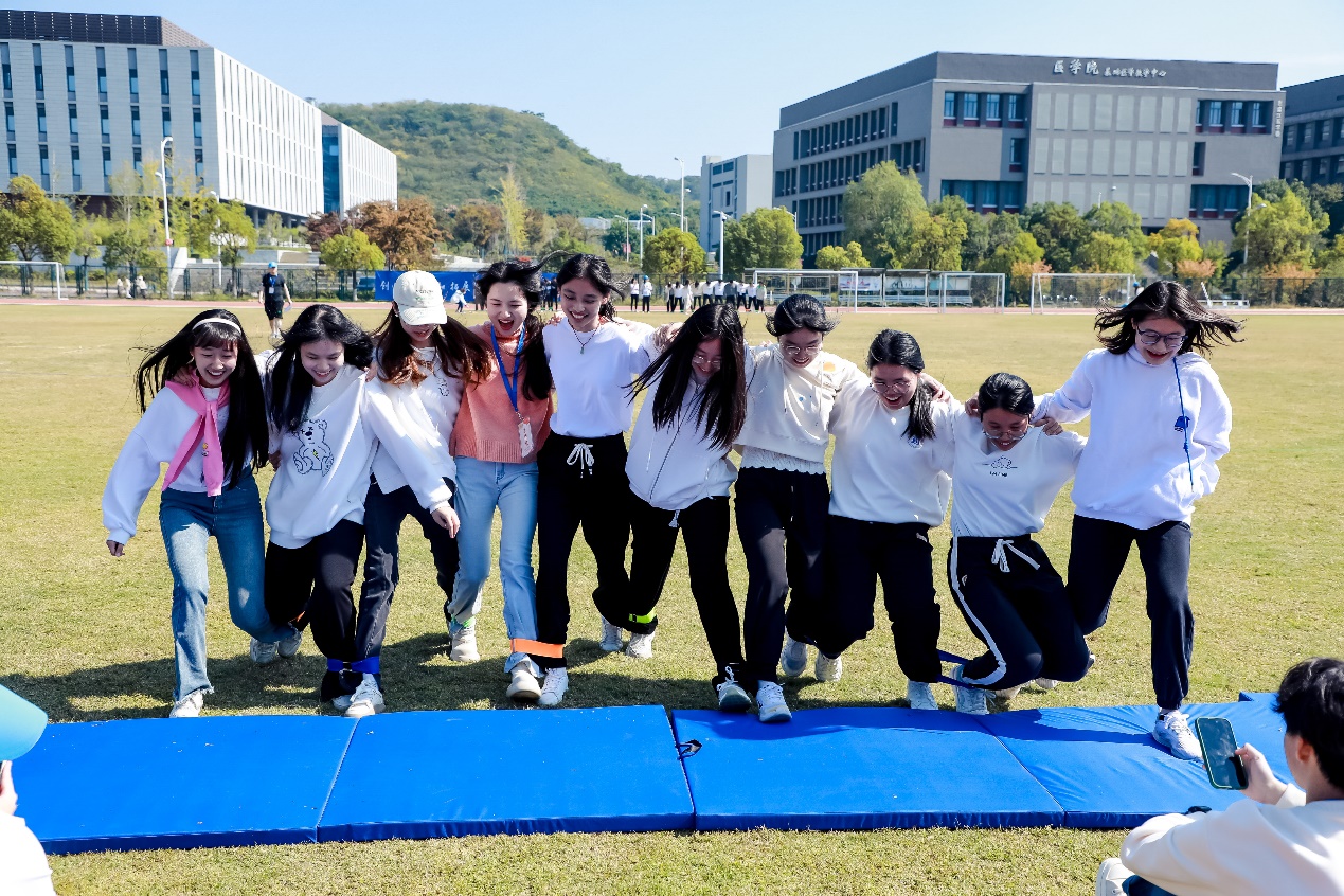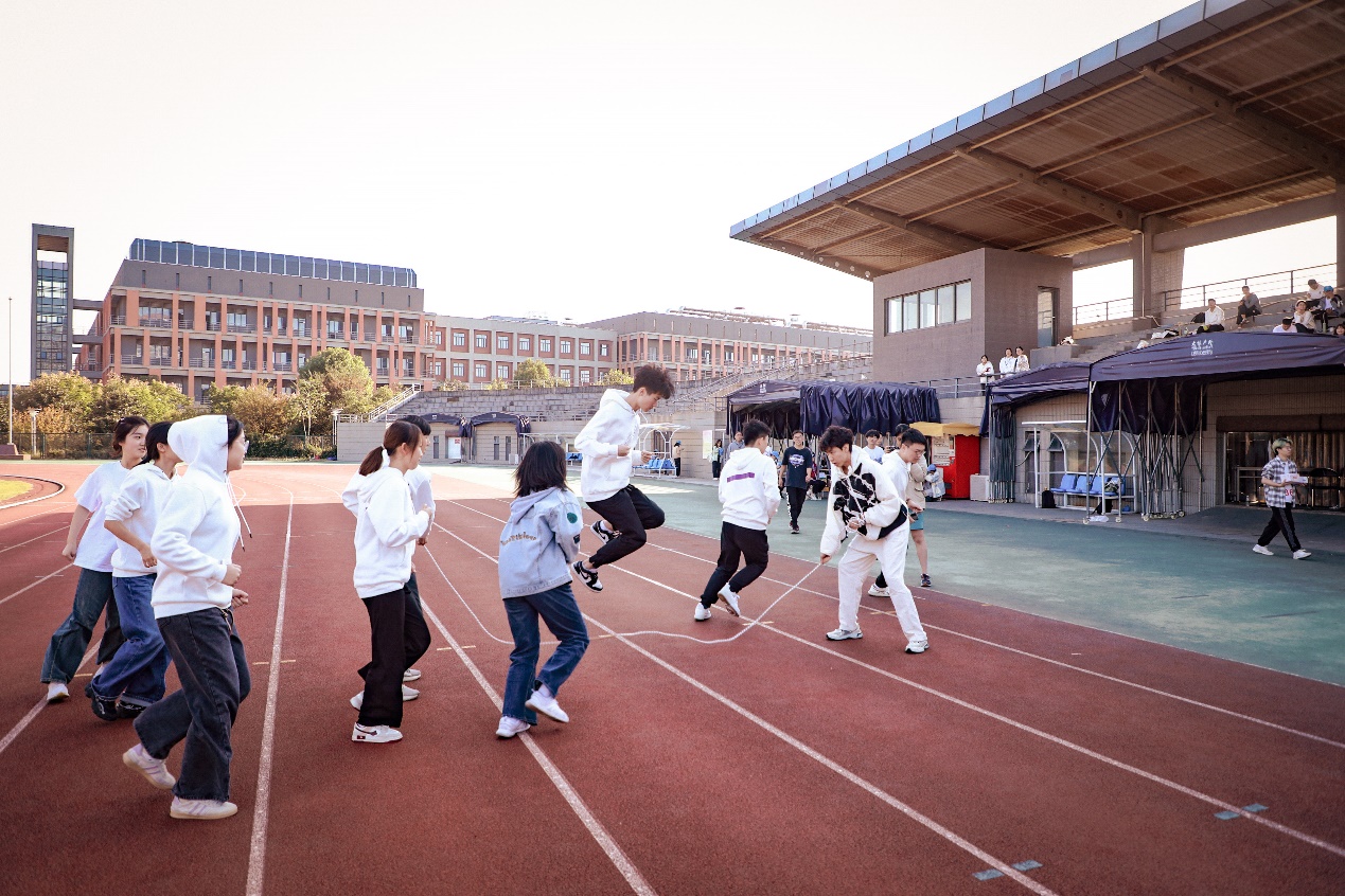 篮球场上,师生趣味运动项目如火如荼地进行。定点投篮、踢毽子、跳长绳、拔河等丰富多样的团体竞赛,让师生们笑而忘忧,尽情享受体育运动带来的欢乐。