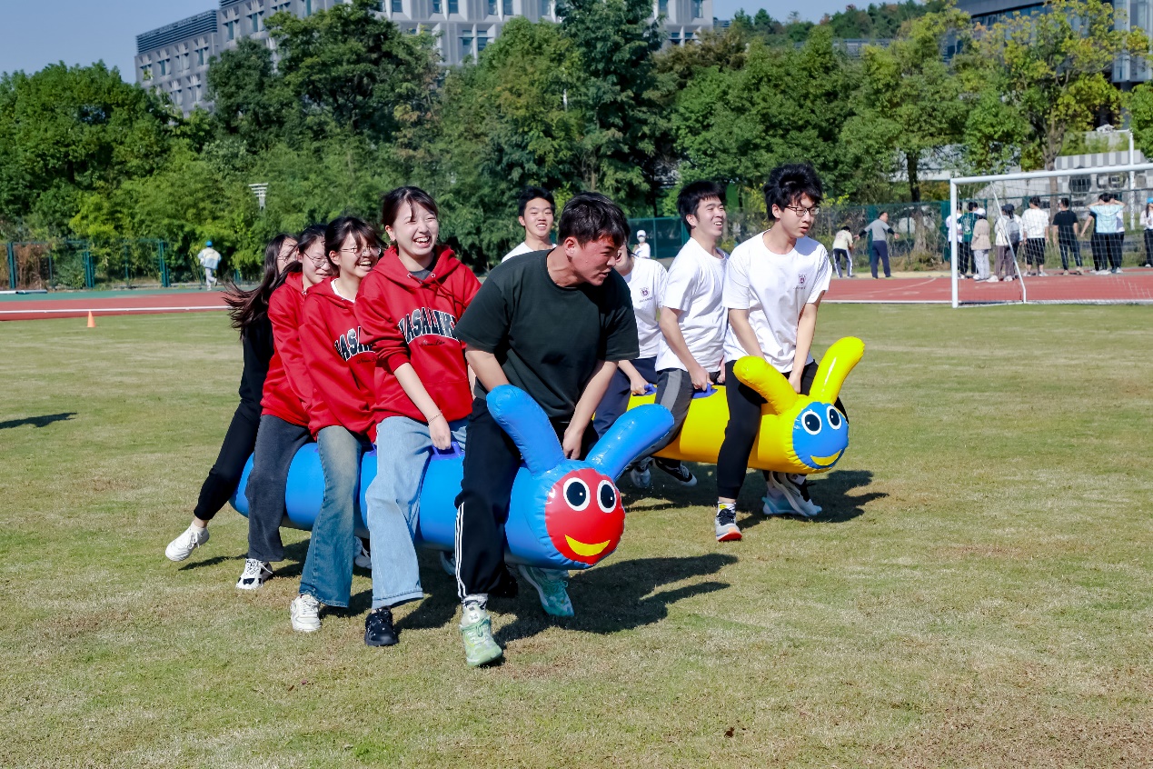 绿茵场上同样充满欢声笑语,推杆跑、毛毛虫竞速、十人十一足、跳长绳、拔河等团体项目精彩纷呈。团体中的我们或许微不足道,但整齐划一的步伐,众志成城的决心,让团体竞技更彰显来自集体和伙伴的无穷力量。