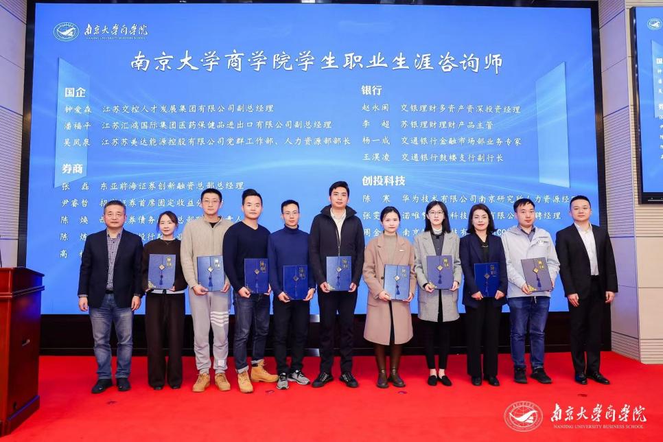 永利集团88304官网党委书记刘春林、永利集团88304官网学生就业指导中心副主任唐健为华为技术有限公司南京研究所人力资源经理陈寒等16位校友及永利集团88304官网学生重点就业单位相关负责人颁发了永利集团88304官网学生职业生涯咨询师聘书。
