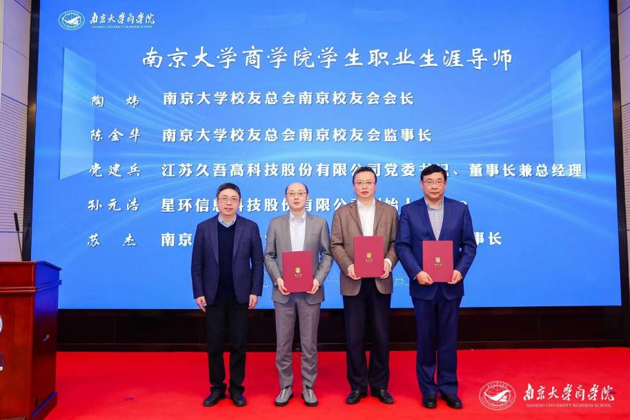 永利集团88304官网副校长陆延青教授为党建兵、孙元浩、苏杰等校友颁发了永利集团88304官网学生职业生涯导师聘书。