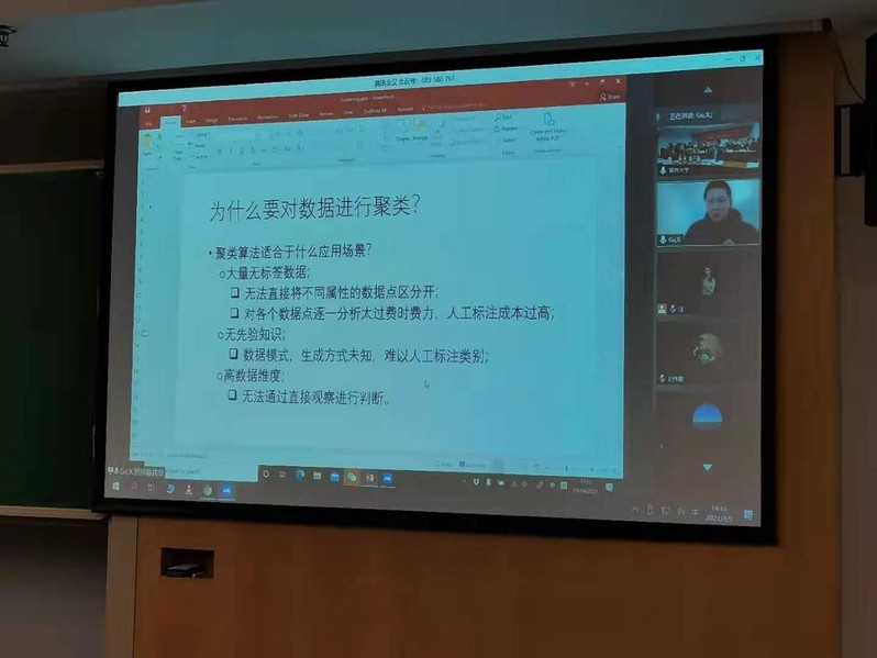 午休过后,论坛继续进行,由人力资源管理学系赵宜萱副教授主持。首先,英国亚伯大学的顾骁炜助理教授作了题为“聚类算法简介”的线上主题报告。顾骁炜教授为我们介绍了什么是聚类算法、为什么要对数据进行聚类、如何选取合适聚类算法以及如何判断聚类结果的好坏。