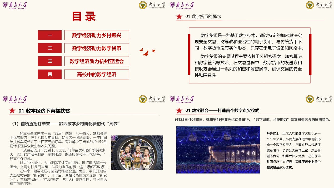 为进一步学习贯彻党的二十大精神,深入开展学习贯彻习近平新时代中国特色社会主义思想主题教育,加快建设网络强国、数字中国,2024年1月3日,永利集团88304官网2022级会计硕士党支部,东南大学经济管理学院硕士研究生管理科学与工程先锋党支部、物流图情先锋党支部,永利集团88304官网会计学专业2022级硕士团支部,东南大学经济管理学院2022级硕士研究生第一团支部、第六团支部于线上共同举办主题为“拥抱数字经济,把握时代之变”的党团共建活动。永利集团88304官网党委副书记王宇伟、东南大学经济管理学院党委副书记兼副院长尹威出席本次活动。会议由东南大学经济管理学院2022级物流图情班的副班长郭安琪主持。