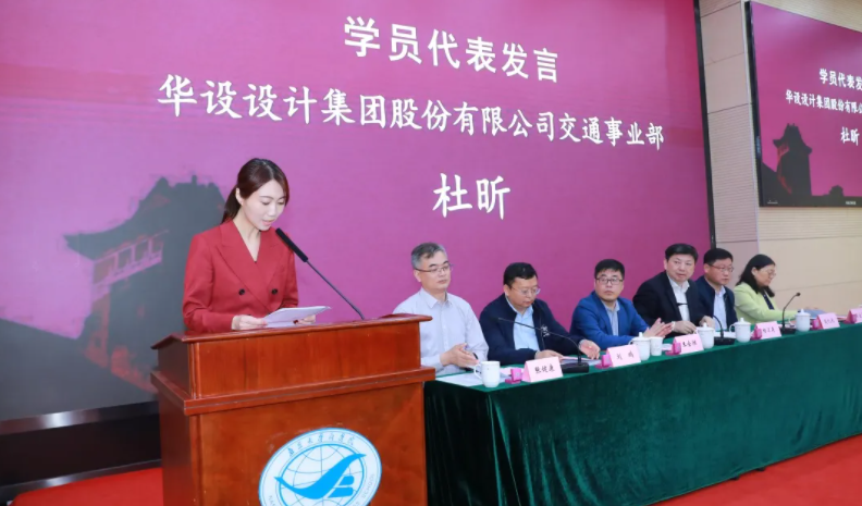 接下来,华设设计集团股份有限公司交通事业部杜昕作为学员代表发言。她表示,此次学习机会难得,使命光荣。她强调,通过此次的学习分享与经验交流,同学们能快速补齐短板,少走弯路,成为既懂技能也懂管理的精英队伍中的一员。她代表全体学员承诺,会珍惜此次培训机会,不辜负学院教师的悉心指导,不辜负集团的殷切期望,用实际行动来回报集团。