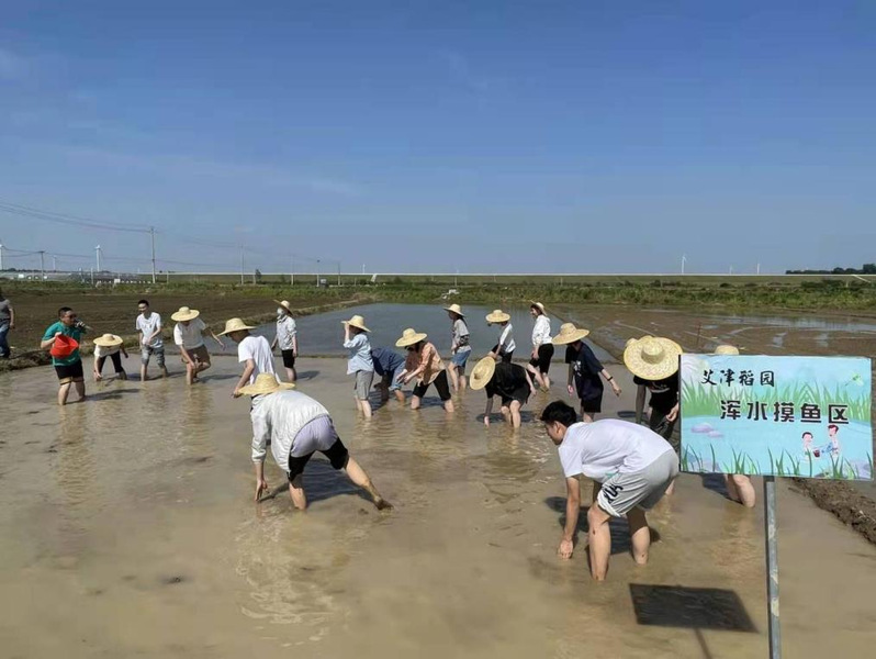 在企业参观与揭牌仪式结束后,同学们脱去鞋袜、卷起裤脚、脚踩泥土,在稻田中体验插秧、捉泥鳅等活动,尽情感受劳动的乐趣。
