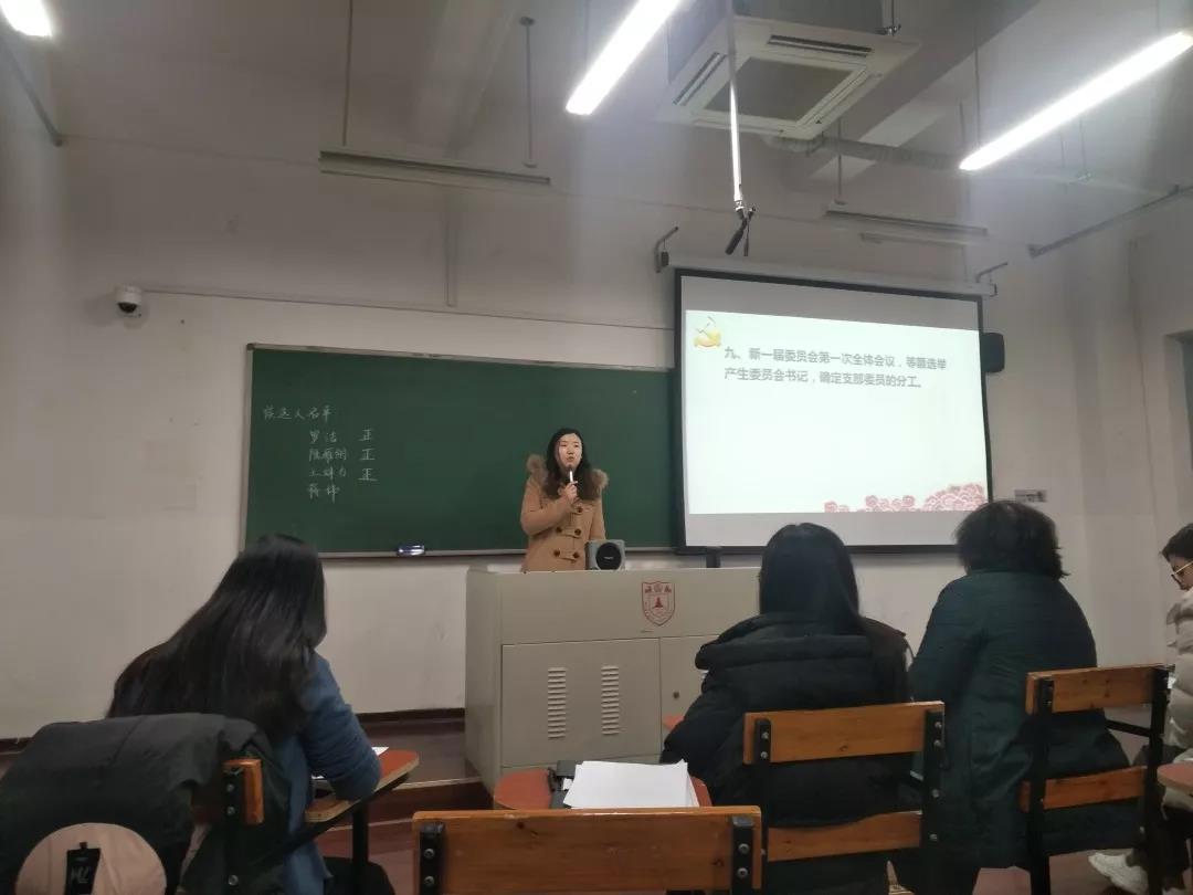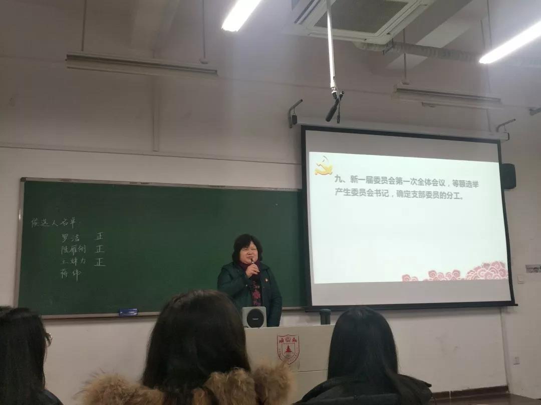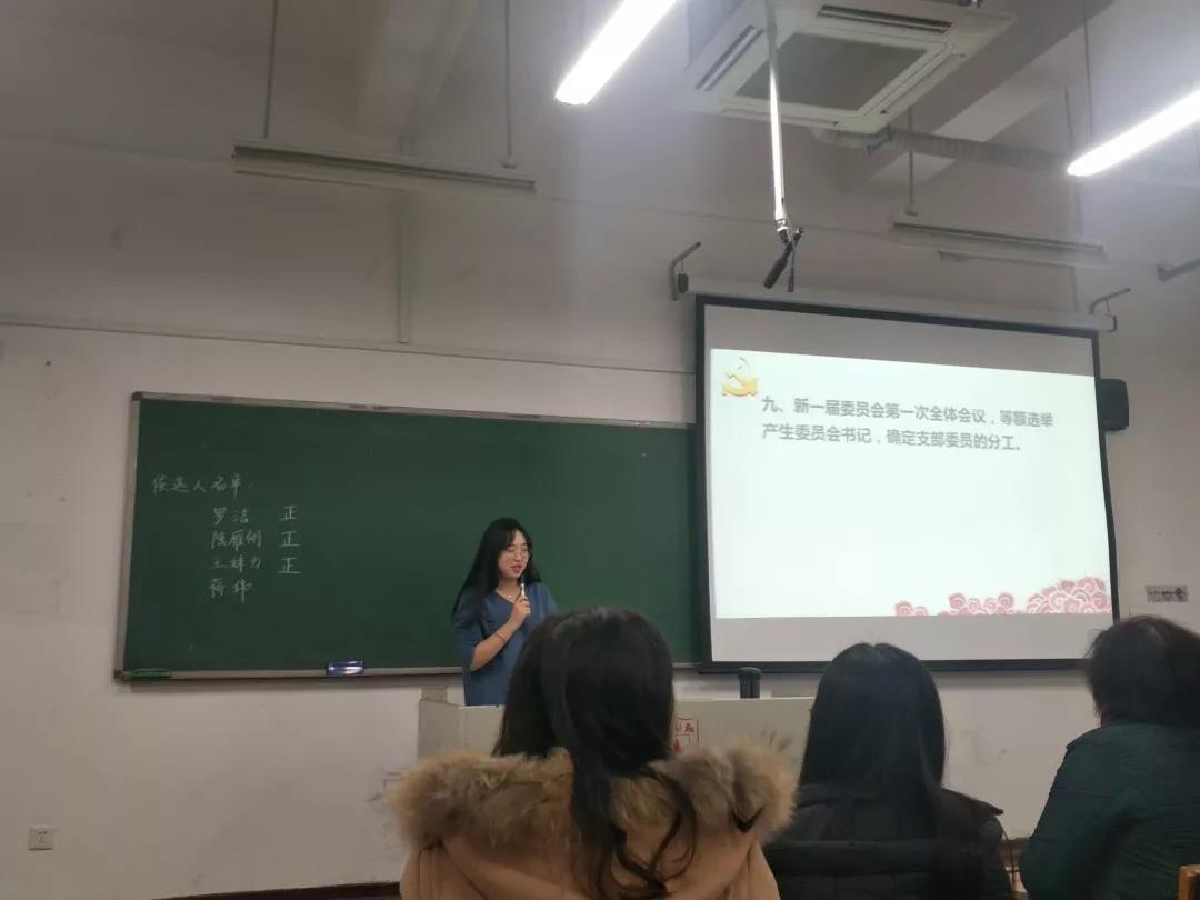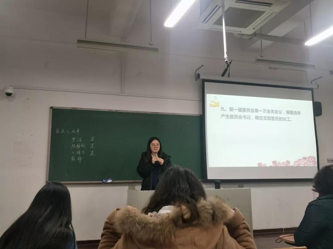 按照差额不少于20%的比例,支部将罗洁、王姝力、陆雁翎和蒋伟确定为候选人。新一届的支委会由3名同志组成,设支部书记1名,组织委员、宣传委员、纪检委员(兼任)、统战委员(兼任)各1名。