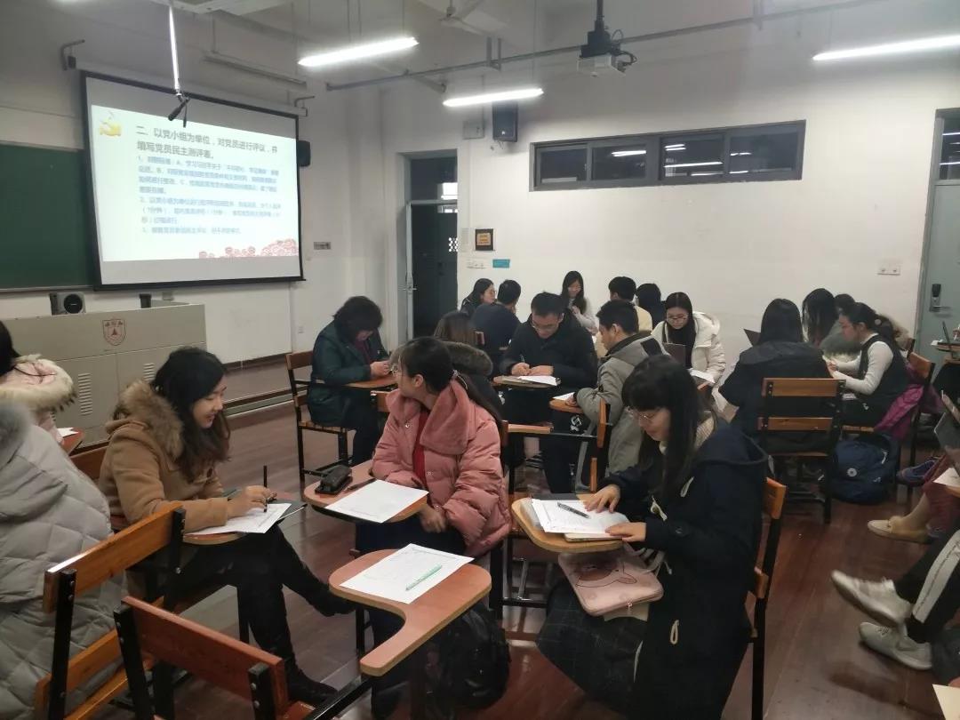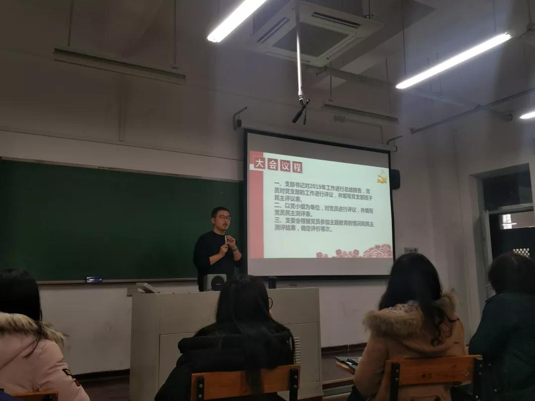织生活会共分为三个部分:工作总结、党员评议、支委会确定评价等级。第一部分,由支部书记蒋伟同志对2019年党支部的工作进行了总结性报告,在肯定了党支部取得的成果的同时提出了党支部目前还存在的问题以及未来发展的方向。汇报结束后,由党员对党支部的工作进行了民主评议,并填写了党支部班子民主评议表。
